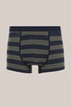 Tragekomfort für jeden Tag Diese Boxershort hat eine reguläre Passform mit mittelhohem Bund und ist mit kürzeren Beinen geschnitten. Abgearbeitet mit einem Blockstreifenprint in dunkelblau und graugrün.