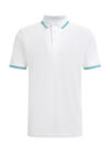 Normal geschnittenes Poloshirt aus Baumwolle mit Polokragen mit kontrastierenden Streifen, Knöpfen am Ausschnitt und kurzen Ärmeln.