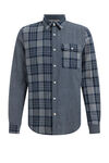 Ein normal geschnittenes Baumwollhemd mit Karomuster und Brusttasche. Das Modell hat einen Kent-Kragen, einen Knopfverschluss und lange Ärmel.