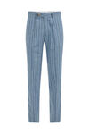 Schmal geschnittene Anzughose aus Leinen-Mix mit Muster, zwei Eingrifftaschen und zwei Paspeltaschen. Ausgestattet mit schmalem Hosenbein und Reißverschluss mit Knopf.