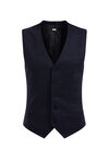 Schmal geschnittene Weste aus elastischem Material mit Karomuster, Knöpfen, einer Brusttasche und zwei angedeuteten Paspeltaschen. Der Rücken ist aus satinartigem Material gearbeitet und mit einem Riegel mit Metallschnalle versehen. Gefüttert.