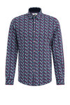 Dieses schmal geschnittene Hemd in weicher Jersey-Qualität ist sehr bequem. Das Modell hat ein verspieltes Muster, einen stilvollen Kent-Kragen, lange Ärmel und einen Knopfverschluss.