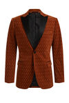 Schmal geschnittenes Sakko aus Samt mit Muster und Knöpfen. Ausgestattet mit zwei Pattentaschen, einer Brusttasche und zwei Innentaschen.