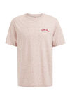 Normal geschnittenes T-Shirt aus Baumwoll-Mix mit Streifenmuster und dekorativer Stickerei. Ausgestattet mit rundem Ausschnitt und kurzen Ärmeln.