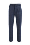 Elegante Hose aus meliertem Baumwoll-Mix mit zwei Eingrifftaschen auf der Vorderseite und zwei Paspeltaschen am Gesäß. Ausgestattet mit Reißverschluss mit Knopf und schmal zulaufendem Hosenbein.
