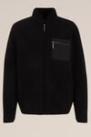 Eine Bomberjacke in normaler Passform aus Teddystoff mit einem Reißverschluss, zwei Seitentaschen und einer Brusttasche mit Reißverschluss. Das fleecegefütterte Modell hat einen Bomberkragen und lange Ärmel.