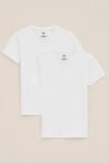 2 Basic-T-Shirts aus Baumwolle mit leichtem Stretchanteil, rundem Ausschnitt und kurzen Ärmeln.
