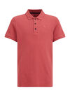 Normal geschnittenes Poloshirt aus Baumwoll-Mix mit Strukturmuster und Knöpfen am Ausschnitt. Ausgestattet mit Polokragen und kurzen Ärmeln.