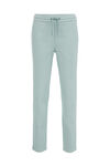 Schmal geschnittene Hose aus meliertem Jersey mit zwei Eingrifftaschen auf der Vorderseite und zwei Paspeltaschen am Gesäß. Ausgestattet mit schmalem Hosenbein und Tunnelzug am Bund.