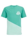 Entdecke die perfekte Mischung aus Stil und Komfort. Dieses Baumwoll-T-Shirt mit normaler Passform zeichnet sich durch trendiges Colorblocking, einen witzigen Aufdruck, einen Rundhalsausschnitt und kurze Ärmel aus.
