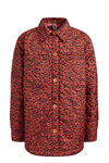 Normal geschnittene Hemdjacke aus Recycling-Gewebe mit Leopardenmuster, Druckknöpfen, zwei Eingrifftaschen und einer Brusttasche. Gefüttert.