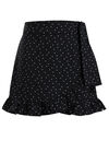 Normal geschnittener Hosenrock aus recyceltem Polyester mit Leopardenmuster und Rüschen. Ausgestattet mit elastischem Bund mit Schleifen-Detail.