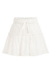 Ein regulär geschnittener Baumwollrock mit strukturiertem Stoff und Spitzenbesatz. Die Hose hat einen elastischen Bund mit Tunnelzug und