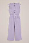 Bequem, spielerisch und nett und entspannt. Der Jumpsuit hat eine normale Passform, einen Rundhalsausschnitt und gerade Beine, ist ärmellos und wird mit Druckknöpfen geschlossen. Die feine Struktur, der Stretch und der Gummizug in der Taille sorgen für eine weiche Passform, in der sie sich den ganzen Tag frei bewegen kann.