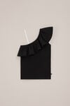 Schön sommerlich und super stylisch. Dieses One-Shoulder-Top hat eine schmale Passform, einen gerüschten Ausschnitt mit Broderie Anglaise und ein transparentes Schulterband auf der anderen Seite für ein subtiles Detail.