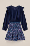 Das ist das Must-have für jedes Mädchen. Dieses weiche Baumwollkleid hat ein schönes Muster und fröhliche Volants. Mit dem Rundhalsausschnitt, den langen Ärmeln und dem Glitzerbund trägt sich das Modell sehr angenehm und garantiert viel Tragespaß.