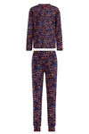 Zweiteiliger Schlafanzug aus gemustertem Baumwoll-Mix mit normaler Passform. Das Oberteil hat einen runden Ausschnitt und lange Ärmel, die Hose schmale lange Hosenbeine.