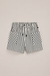 Wunderbar bequem, mit ein bisschen mehr Stil. Diese Shorts für Mädchen haben eine lockere Passform, einen elastischen Bund mit Kordelzug, zwei quadratische Seitentaschen, gerade Hosenbeine, Stretch und einen fein strukturierten eingewebten Streifenprint.