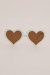 Das ist eine, die oft für Fotos verwendet wird. Diese Sonnenbrille hat einen cremefarbenen, herzförmigen Rahmen mit gezacktem Rand, braune Gläser, UVA/UVB-Schutz und ein Etui aus Mikrofaser. So peppt dein Outfit erst richtig auf.