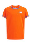Ein normal geschnittenes Baumwoll-T-Shirt mit Pailletten-Applikation. Ausgestattet mit rundem Ausschnitt und kurzen Ärmeln mit kontrastierenden Bündchen.