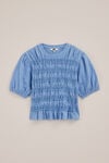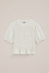 Wird es ein neuer Favorit? Dieses T-Shirt hat eine normale Passform, einen Rundhalsausschnitt und kurze Ärmel mit elastischem Saum. Die Falten und das mit Stickereien versehene Smok-Detail auf der Vorderseite machen es zu etwas ganz Besonderem, das sich wunderbar kombinieren lässt.