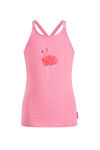 Normal geschnittenes Trägertop aus Baumwoll-Mix mit leichtem Stretchanteil und dekorativer Applikation auf der Vorderseite. Das Top hat einen runden Ausschnitt und schmale Träger mit Glitzereffekt.