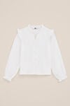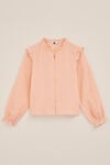 Unverzichtbar im Kleiderschrank der Kids. Diese Bluse hat eine normale Passform, einen runden Ausschnitt mit Rüschen und eine kleine V-Öffnung mit Knopfverschluss darunter. Die langen Ärmel sind mit Rüschen an den Schultern und einem Gummizug am Saum versehen. Der Artikel ist aus geschmeidigem, doppelt gewebtem Dobby-Stoff gefertigt, der angenehm zu tragen ist und schön bleibt.