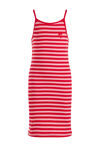 Schmal geschnittenes Kleid aus Baumwolle mit leichtem Stretchanteil, Streifenmuster und dekorativer Stickerei auf der Brust. Das Kleid hat einen runden Ausschnitt und verstellbare Spaghettiträger