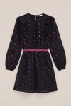 Das ist das Must-have für jedes Mädchen. Dieses Baumwollkleid hat ein Muster und Rüschen. Mit seinem Rundhalsausschnitt mit Knopfverschluss, den langen Ärmeln und der regulären Passform trägt sich das Kleid bequem und garantiert endlosen Tragevergnügen.