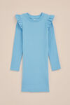 Ein Kleid, das immer die Blicke auf sich zieht. Dieses normal geschnittene Kleid aus einer Baumwollmischung mit Rippenstruktur und romantischen Rüschen an den Schultern ist eine perfekte Mischung aus Stil und Komfort. Von der Schule bis zur Party: Dieses Kleid macht jeden Anlass zu etwas Besonderem. Der weiche Stoff und das fröhliche Design sorgen dafür, dass sich deine kleine Fashionista wohlfühlt und den ganzen Tag gut aussieht.