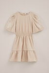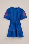 Fröhlich, bequem und wie geschaffen, um den ganzen Tag darin zu glänzen. Das Kleid hat eine normale Passform, einen Rundhalsausschnitt, Ballonärmel mit Gummizug, einen einzigen Knopf am Rücken, einen Gummizug in der Taille, eine kurze Länge und eine hübsche Stickerei.