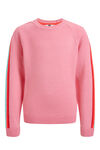 Normal geschnittener Pullover aus Acryl-Mix mit Streifenbesatz. Ausgestattet mit rundem Ausschnitt und langen Ärmeln.