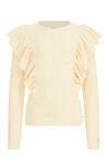 Normal geschnittenes Shirt aus Viskose-Mix mit Glitzergarn und Rüschen. Ausgestattet mit rundem Ausschnitt und langen Ärmeln.