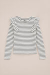 Gestalte im Nu die modischsten Looks. Normal geschnittenes Shirt aus einer Baumwollmischung. Mit dem lustigen Streifenmuster, dem tollen Glitzergarn und den fröhlichen Rüschen hat das Modell einen verspielten Look, der jedes Outfit aufpeppen wird. Ein runder Ausschnitt und lange Ärmel runden das Modell ab.