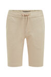 Schmal geschnittene Shorts in Stretch-Qualität mit Mischoptik, zwei Seitentaschen und zwei Paspeltaschen. Ausgestattet mit elastischem Bund mit Tunnelzug und schmalem Hosenbein.