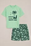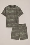 Schlafen Sie bequem und mit Stil. Dieser Pyjama hat eine normale Passform und besteht aus einem T-SHIRT mit Rundhalsausschnitt und kurzen Ärmeln, kombiniert mit einer HOSE mit kurzem Bein und elastischem Bund. Der Allover-Mikrodruck mit Tupfen verleiht dem Set einen fröhlichen Look.
