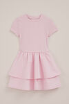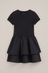 Wir sind Fans, du auch? Dieses Kleid kombiniert ein Slim-Fit-Top mit einem luftigen Rock. Das Oberteil ist aus geripptem Stoff, hat kurze Ärmel und einen Rundhalsausschnitt. Die Unterseite aus Baumwolle besteht aus zwei sich überlappenden Lagen, die sanft auslaufen.
