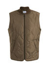 Schmal geschnittene Steppweste aus gewebtem Material mit Reißverschluss und zwei Eingrifftaschen mit Druckknopf.