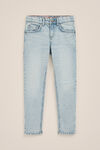 Ein Must-Have für jeden Tag! Diese 5-Pocket-Jeans mit normaler Passform und konisch zulaufendem Bein hat einen Schiebeknopf und einen Reißverschluss und ist perfekt für Jungen, die einen coolen und dennoch bequemen Look lieben. Mit ihrer gebleichten Waschung und den dezenten Rissen liegt sie voll im Trend.
