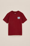 Für sonnige Tage (und alle anderen). Dieses normal geschnittene Kurzarm-T-Shirt mit Rundhalsausschnitt hat einen fröhlichen Druck auf der Brust und einen großen, auffälligen Druck auf dem Rücken.