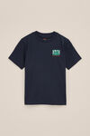 Für sonnige Tage (und alle anderen). Dieses normal geschnittene Kurzarm-T-Shirt mit Rundhalsausschnitt hat einen fröhlichen Druck auf der Brust und einen großen, auffälligen Druck auf dem Rücken.
