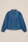 Hart und süß passen erstaunlich gut zusammen. Diese Denim-Bluse in normaler Passform hat einen Kragen, einen Knopfverschluss und lange Ärmel.
