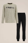 Mit diesem normal geschnittenen Schlafanzug aus gemustertem Baumwoll-Stretch lässt es sich ins Land der Träume reisen. Das Oberteil hat einen runden Ausschnitt, lange Ärmel und einen Aufdruck auf der Brust. Die lange Hose hat einen elastischen Bund und schmale Hosenbeine.