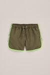 Bombe! Diese Badehose ist mit ihrem dehnbaren Bund und dem praktischen Kordelzug auf der Innenseite wie geschaffen für Action. Sportliche Streifendetails und praktische Taschen vervollständigen sie.