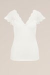 Ein Muss in deiner Garderobe. Dieses modische Top mit Spitze, V-Ausschnitt und einer fließenden Passform ist sowohl elegant als auch bequem. Der strukturierte Saum vervollständigt das Modell.