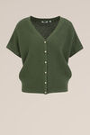 Die perfekte Ergänzung zu deinen Outfits und deiner Garderobe. Diese weit geschnittene Strickjacke aus 100% Bio-Baumwolle hat eine normale Passform, kurze Ärmel und einen modischen V-Ausschnitt. Die goldenen Knöpfe machen das Teil besonders schick.
