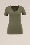 Lass deinen Stil mit mühelosem Flair erstrahlen. Ein schmal geschnittenes T-Shirt aus einer luxuriösen Baumwollmischung, mit V-Ausschnitt und einem Hauch von Freiheit durch kurze Ärmel. Ein Must-have für deine tägliche Dosis an schickem Komfort.