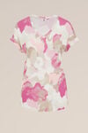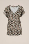 Für alle, die es schlicht, aber nicht langweilig mögen. Dieses geschmeidige T-Shirt aus Ecovero-Viskose hat einen V-Ausschnitt und kurze Ärmel. Erhältlich in verschiedenen Prints, die so vielseitig sind wie du selbst.