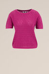 Ein atmungsaktives Modekunstwerk. Dieser Pullover in normaler Passform aus 100 % Bio-Baumwolle kombiniert ein verspieltes Ajourmuster mit einem Rundhalsausschnitt und kurzen Ärmeln. Ideal für Tage, an denen du glänzen, aber nicht schwitzen willst.