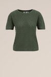 Ein atmungsaktives Modekunstwerk. Dieser Pullover in normaler Passform aus 100 % Bio-Baumwolle kombiniert ein verspieltes Ajourmuster mit einem Rundhalsausschnitt und kurzen Ärmeln. Ideal für Tage, an denen du glänzen, aber nicht schwitzen willst.